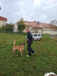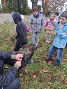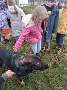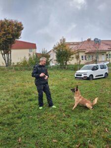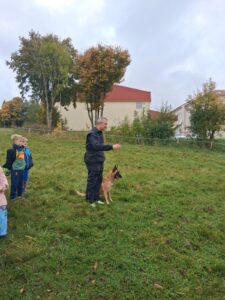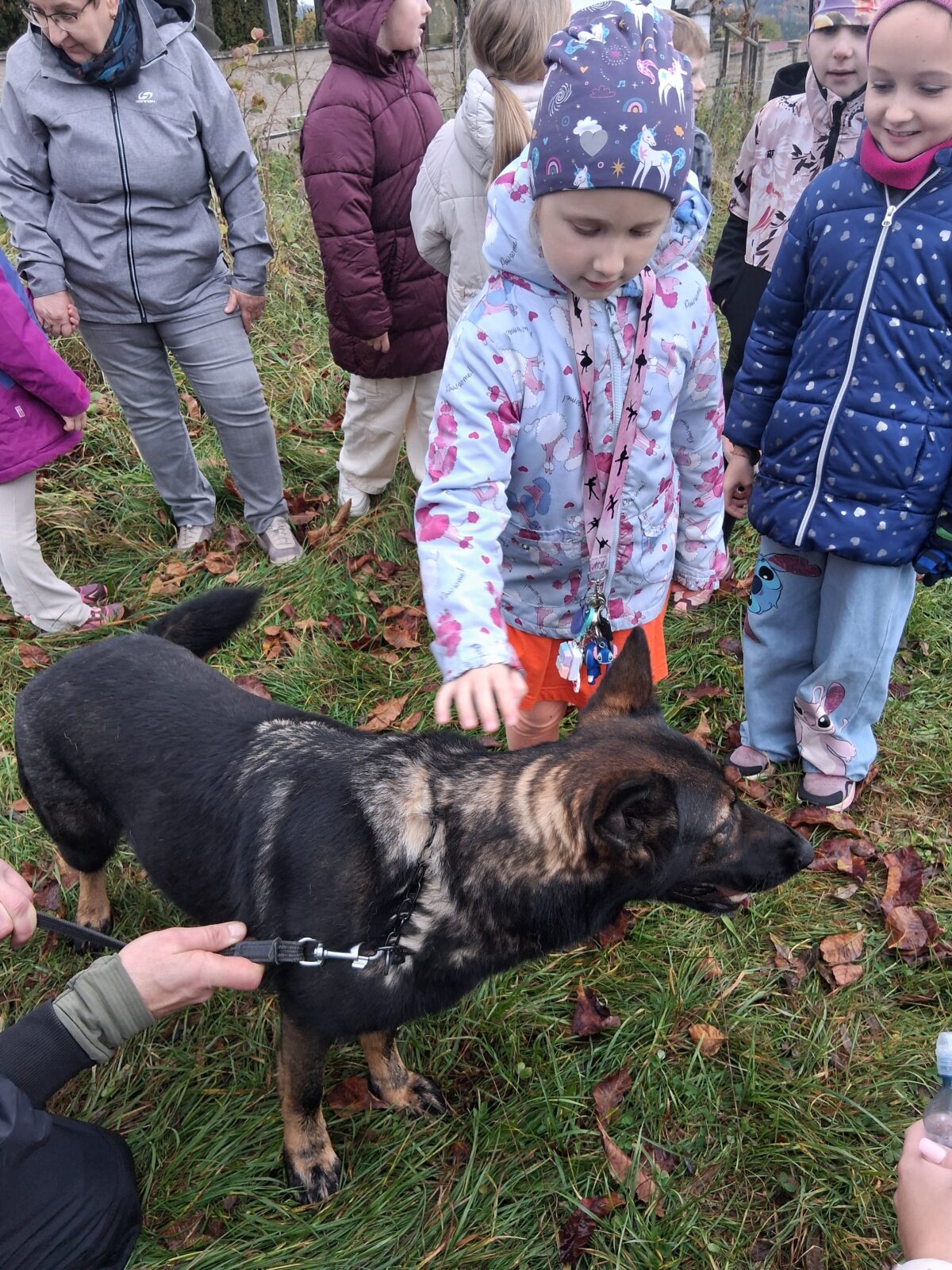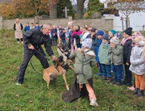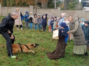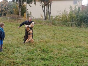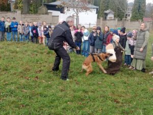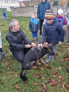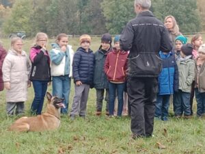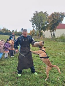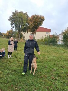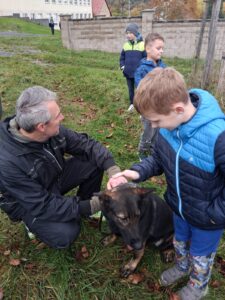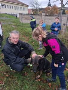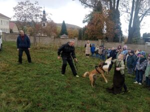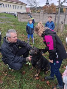 Ve čtvrtek 16.10. odpoledne nás ve školní družině navštívil psovod policie České republiky s fenkami Verunkou a Friggou. Vyprávěl dětem o tom, jak se služební psi cvičí a jak pomáhají policejním psovodům ve službě. Předvedl nám ukázku výcviku služebních psů, jejich poslušnost a schopnosti – vyhledání výbušniny i zadržení pachatele. Některé děti si vyzkoušely být figurantem. Na závěr jsme si psy mohli pohladit. Děkujeme za skvělé odpoledne. Byli jsme nadšeni.