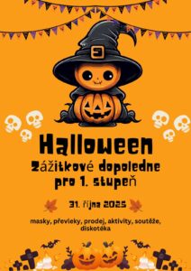 V pátek 31. 10. se žáci 1. stupně mohou těšit na společně strávený den plný zábavy a strašidelných zážitků. Děti přijdou v kostýmech, mohou potěšit ostatní prodejem halloweenských dobrůtek, dekorací a překvapení. Nebude chybět ani malá diskotéka v tělocvičně.