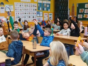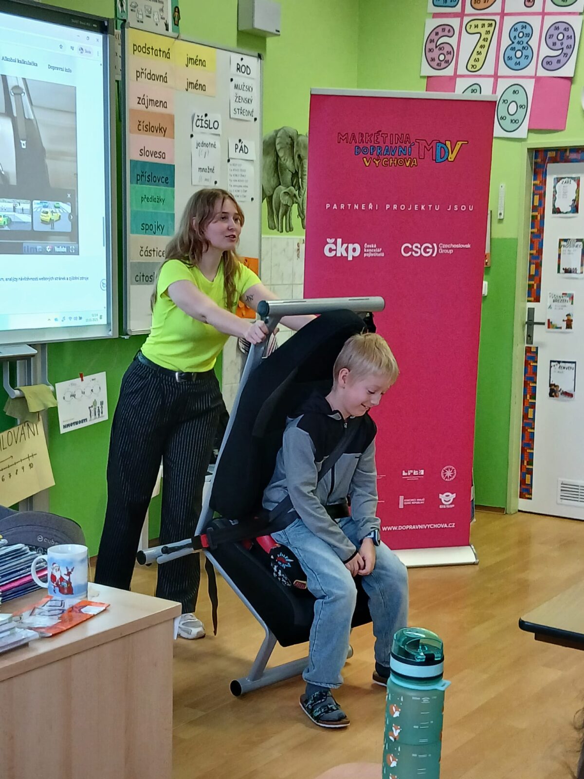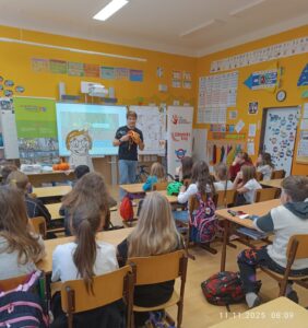 V úterý 11.11. k nám na 1. stupeň zavítali mladí lektoři se skvělým projektem Markétina dopravní výchova. Děti 3.- 5. tříd vystřídaly 4 stanoviště zaměřené na zdravovědu, jízdu na kole i v autě, a také na chování v roli chodce. Setkání bylo přínosné a děti byly velice šikovné. Děkujeme. ![]()