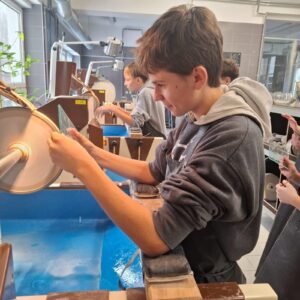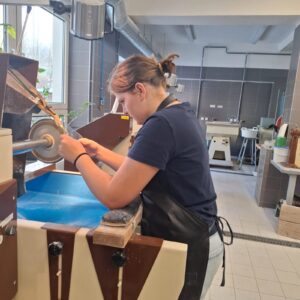 Naši osmáci se vydali do Střední uměleckoprůmyslové školy na workshop. Děti si pod vedením odborníků vyzkoušely dekorování skla pískováním a broušením. Věříme, že některé žáky kreativní prostředí školy oslovilo natolik, že si „Sklandu“ vyberou k dalšímu studiu.