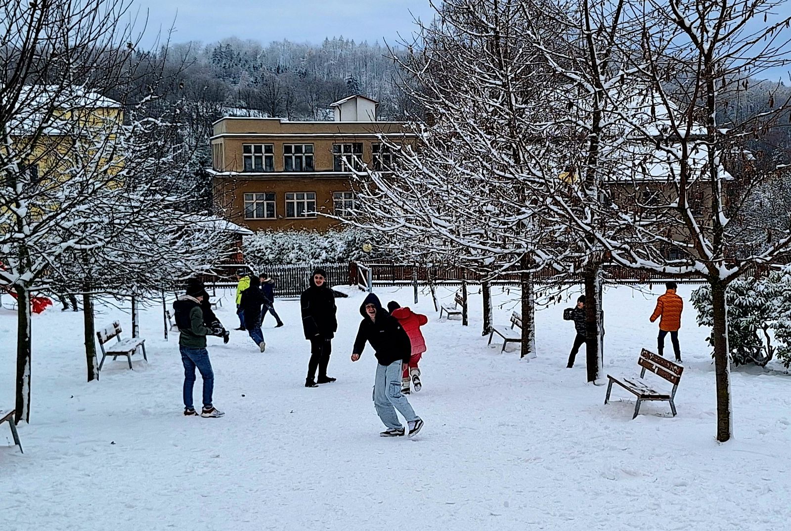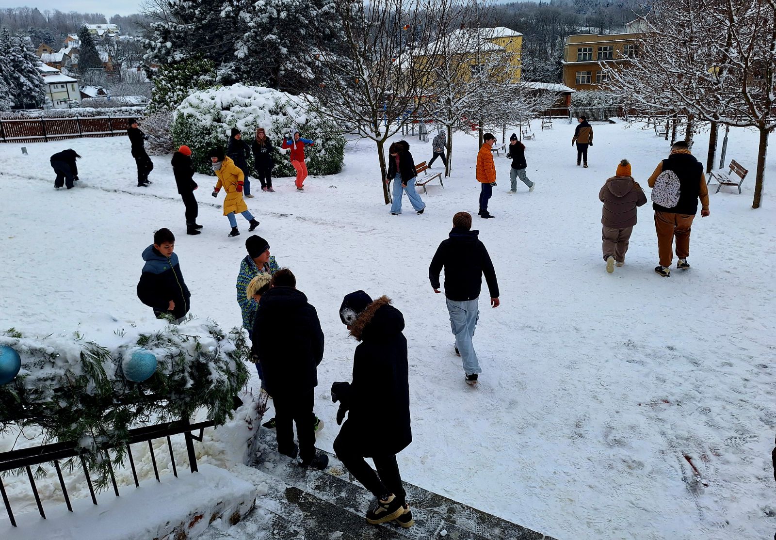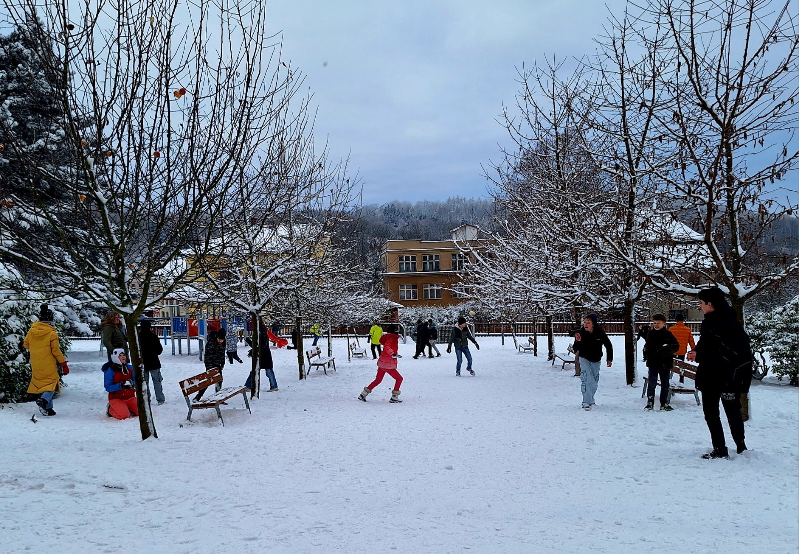 Našim žákům nově nabízíme možnost chodit o velkých přestávkách ven – úplně dobrovolně. ❄️😊 Děti si to moc užívají, hlavně teď, když je venku tak krásně bílo!