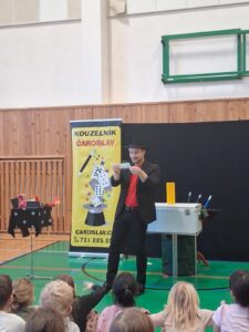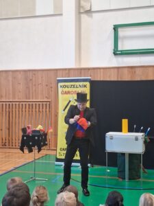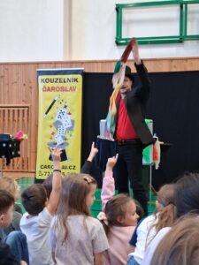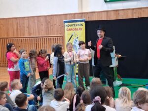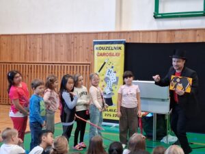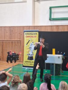 V pátek 12. prosince naši školní družinu navštívil kouzelník Čaroslav. Kouzelník si připravil pestrý program plný překvapení, veselých triků a zábavných momentů. Děti s nadšením sledovaly jeho kouzla s kartami, šátky a kouzelnickou hůlkou. Do některých triků se mohly samy zapojit což vyvolalo spoustu smíchu i bouřlivý potlesk.