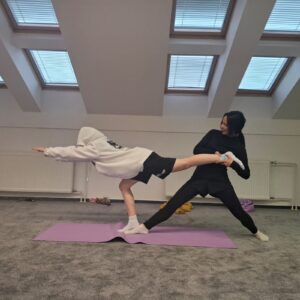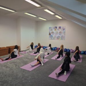 Od září tohoto školního roku funguje na druhém stupni naší školy kroužek jógy pro dívky, který nabízí prostor ke zklidnění, protažení těla i uvolnění mysli. Během lekcí se dívky seznamují se základními jógovými pozicemi, dechovými cvičeními, relaxací i hravými pohybovými aktivitami podporujícími soustředění a spolupráci. Velmi oblíbená je i jóga ve dvojicích.