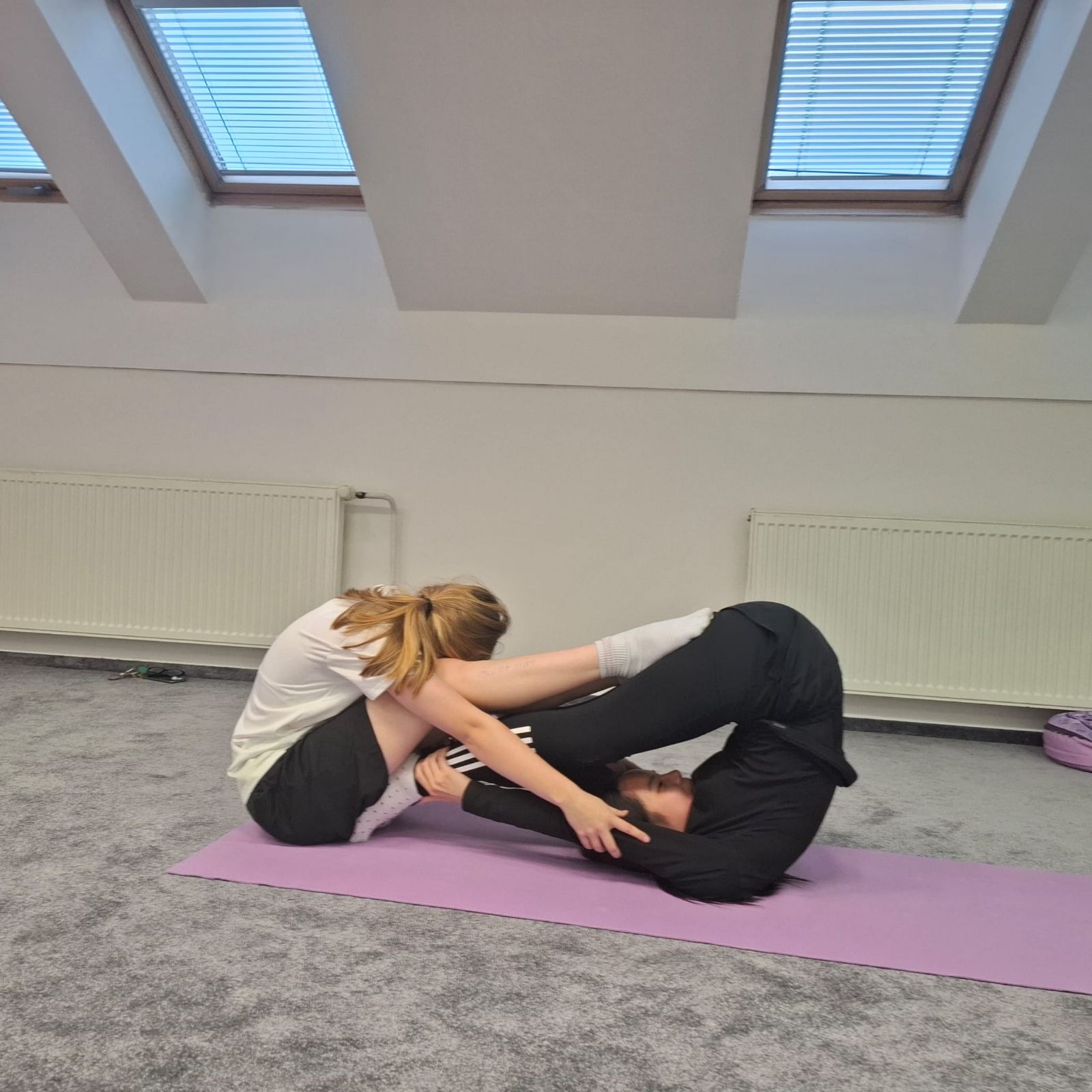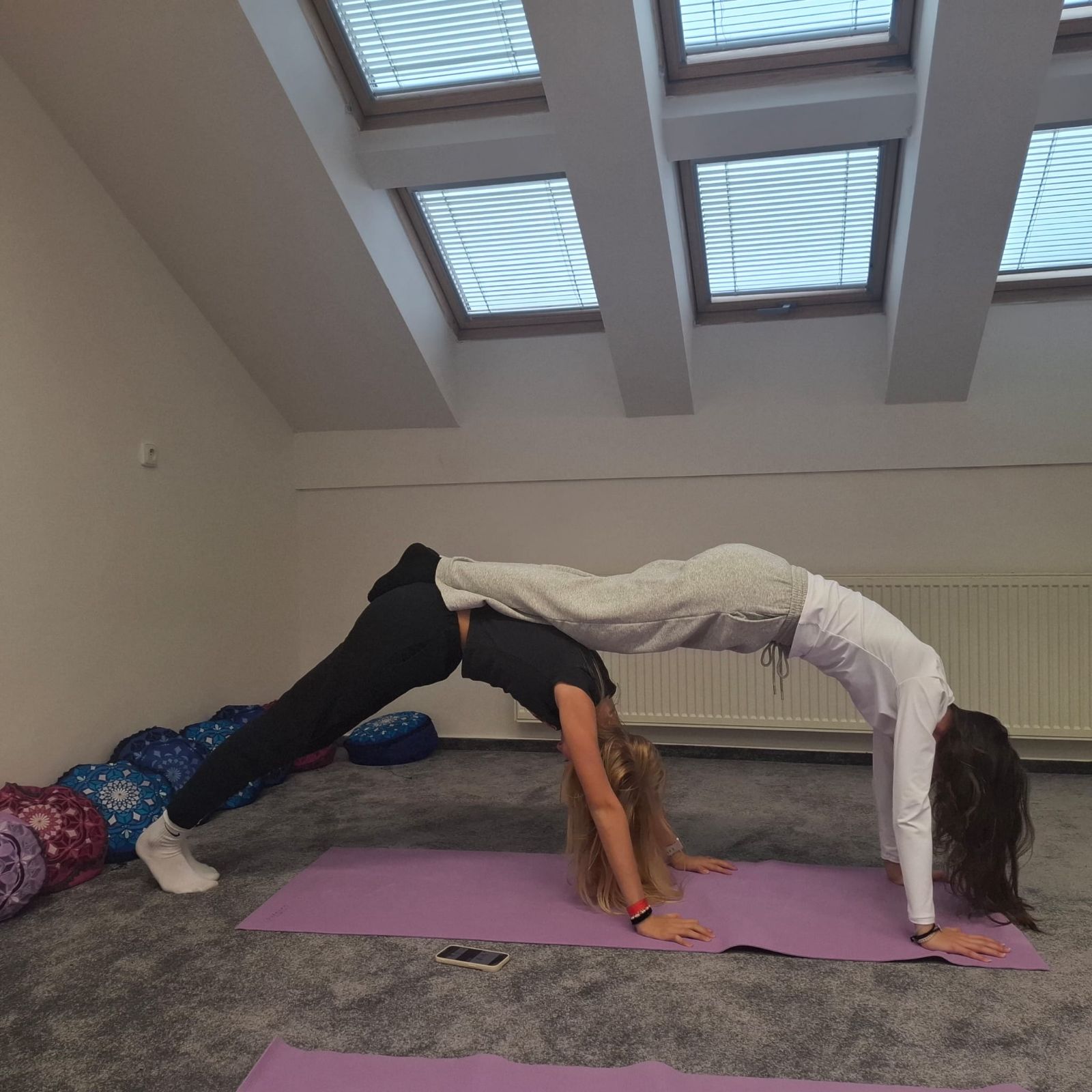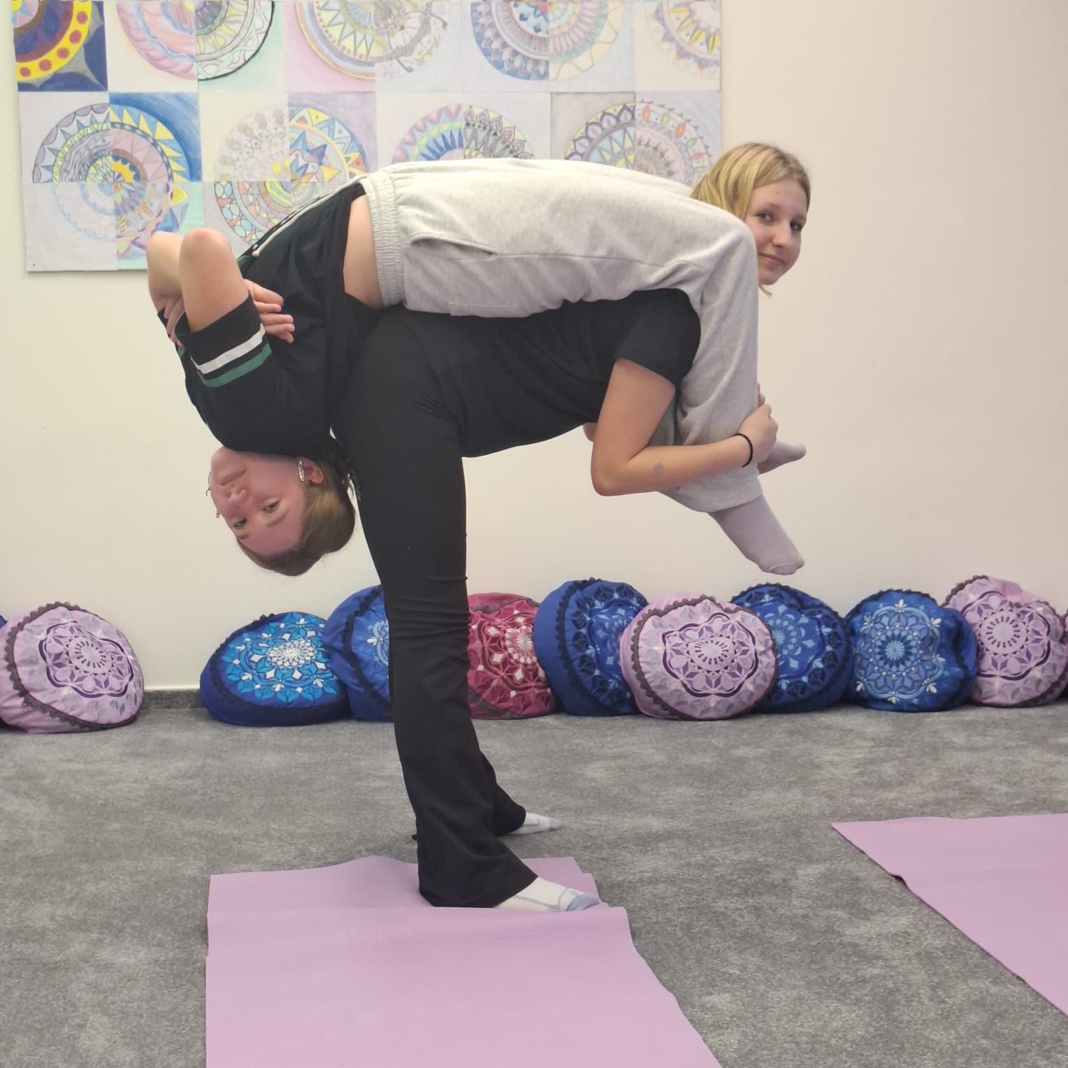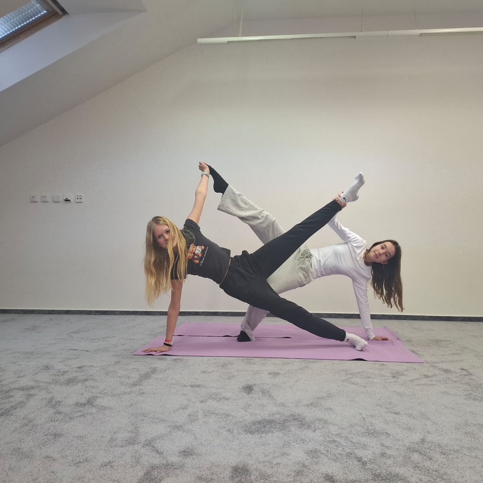 Od září tohoto školního roku funguje na druhém stupni naší školy kroužek jógy pro dívky, který nabízí prostor ke zklidnění, protažení těla i uvolnění mysli. Během lekcí se dívky seznamují se základními jógovými pozicemi, dechovými cvičeními, relaxací i hravými pohybovými aktivitami podporujícími soustředění a spolupráci. Velmi oblíbená je i jóga ve dvojicích.