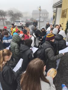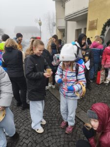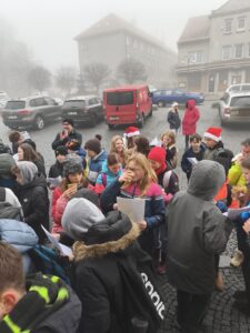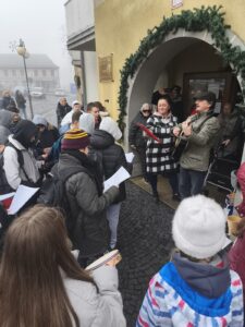 Jako každý rok se děti sešly na náměstí, aby v adventním čase zazpívaly vánoční koledy a potěšily místní seniory. Přátelská atmosféra, známé melodie a dětské hlasy vykouzlily úsměvy na tvářích všech přítomných. Po vystoupení byly seniorům předány malé balíčky, které s láskou vyráběly děti na kroužku Barevné ručičky. Dárečky udělaly radost a byly krásným symbolem mezigeneračního setkání.