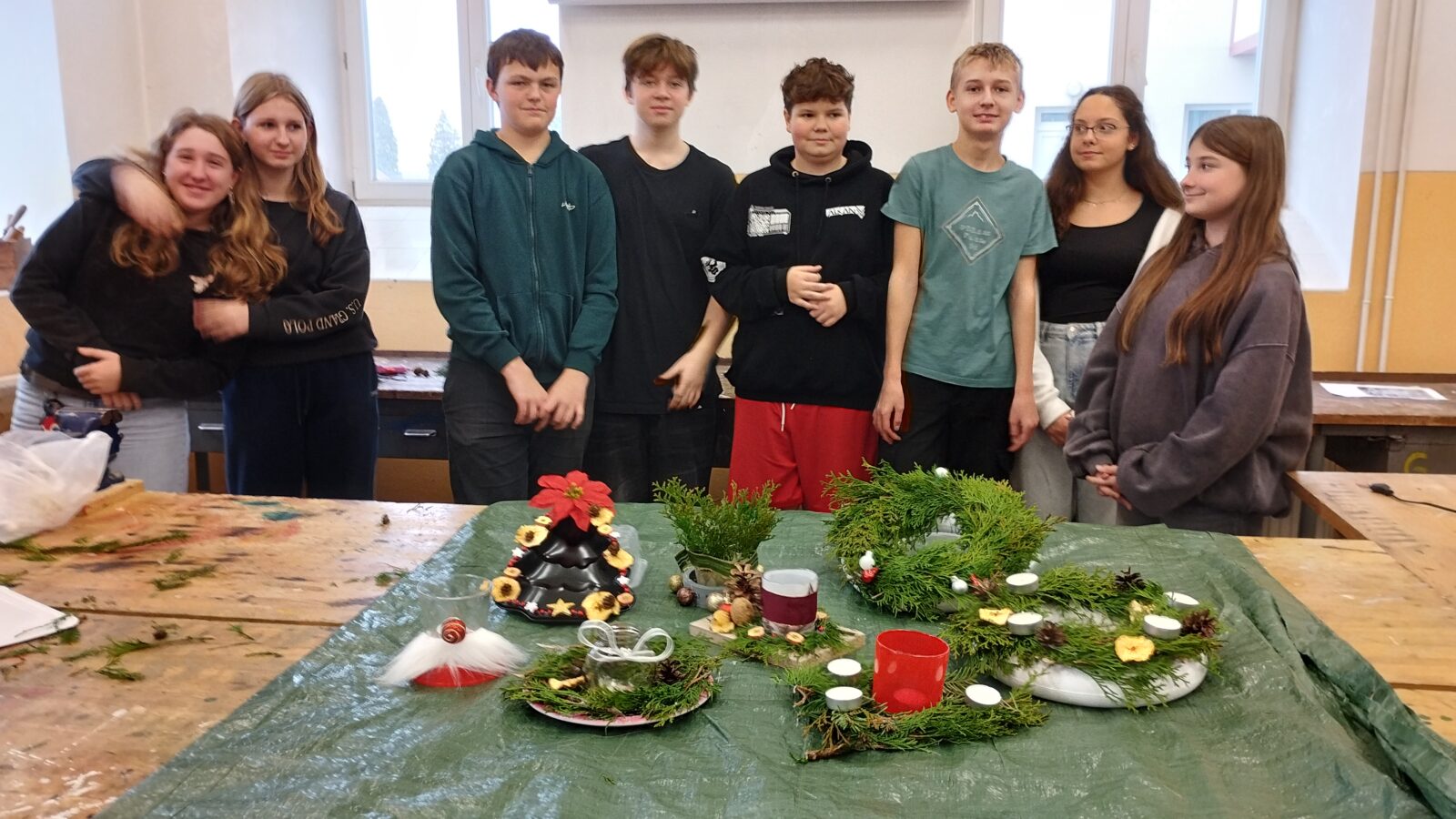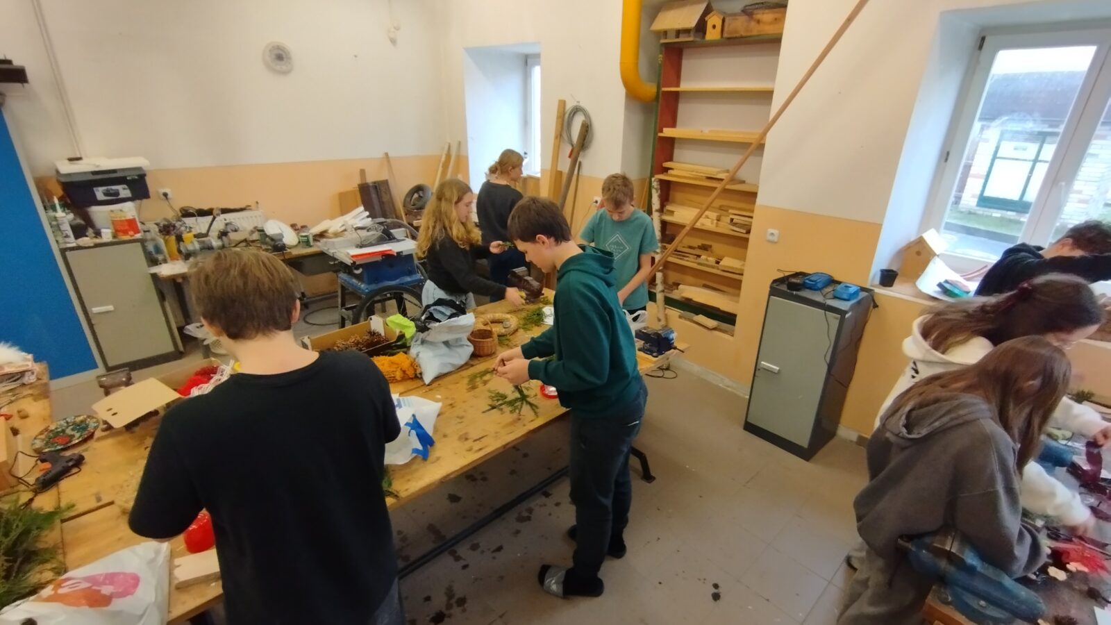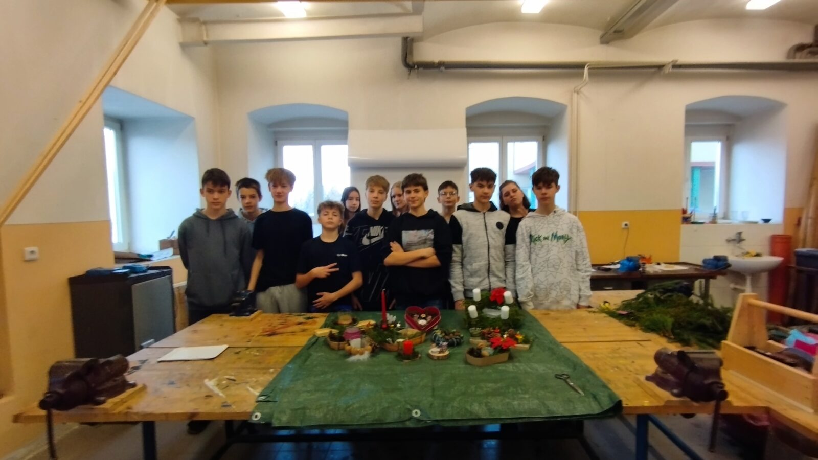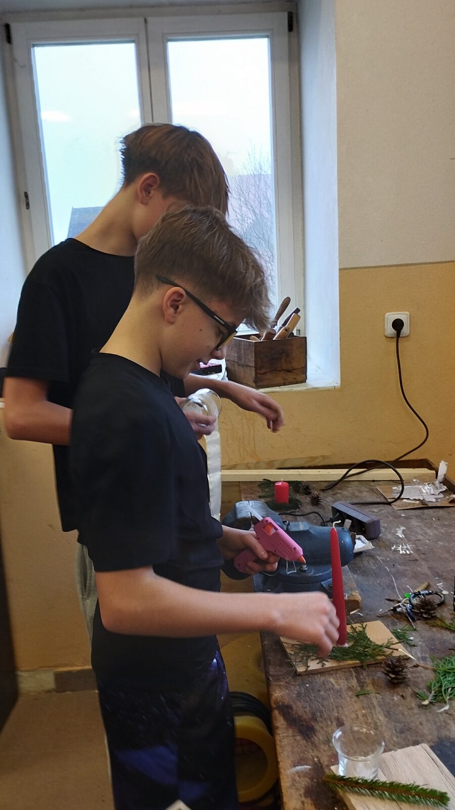 Také žáci 8.B se pustili do výroby vlastních vánočních dekorací. Pracovali s přírodními i recyklovanými materiály. Pod jejich rukama vznikaly originální věnce, svícny apod. Žáci si navzájem pomáhali, sdíleli nápady a užívali si příjemnou předvánoční atmosféru.