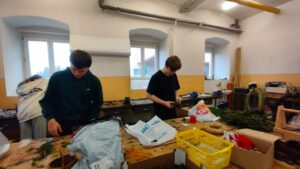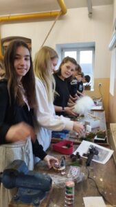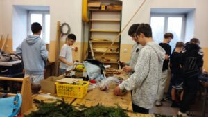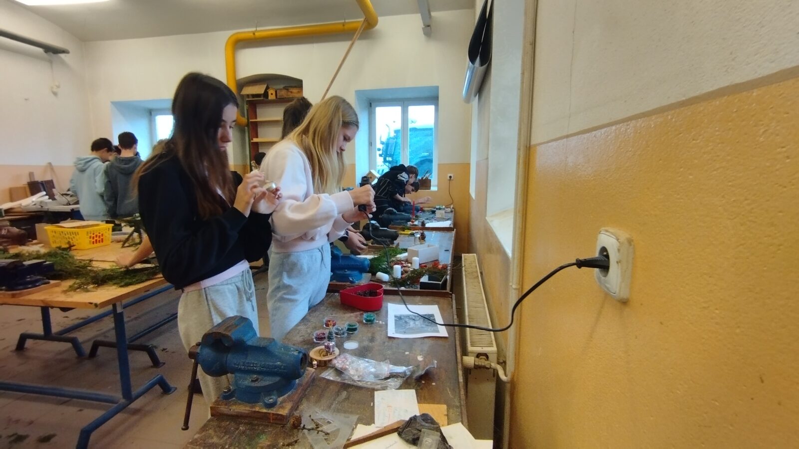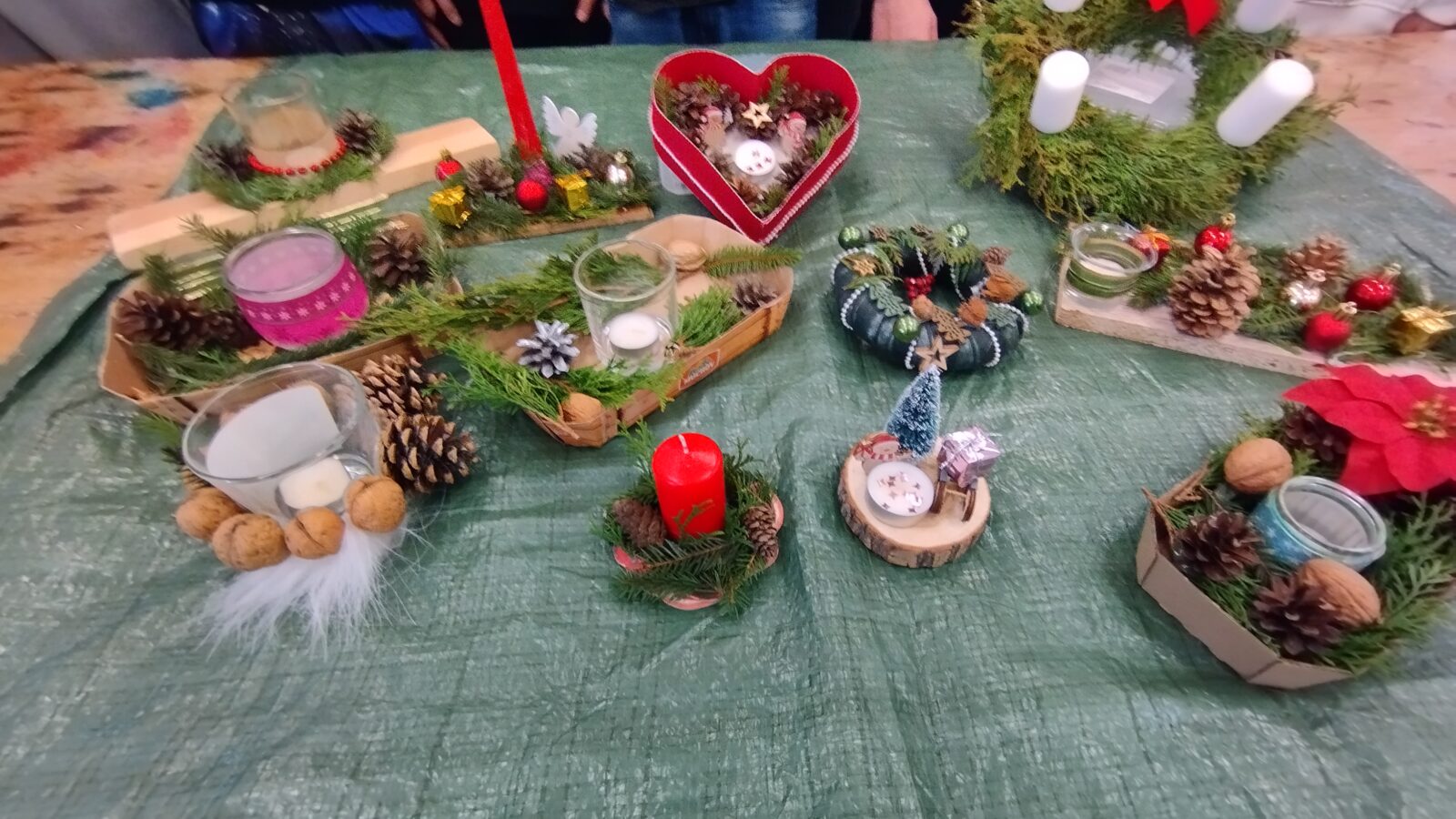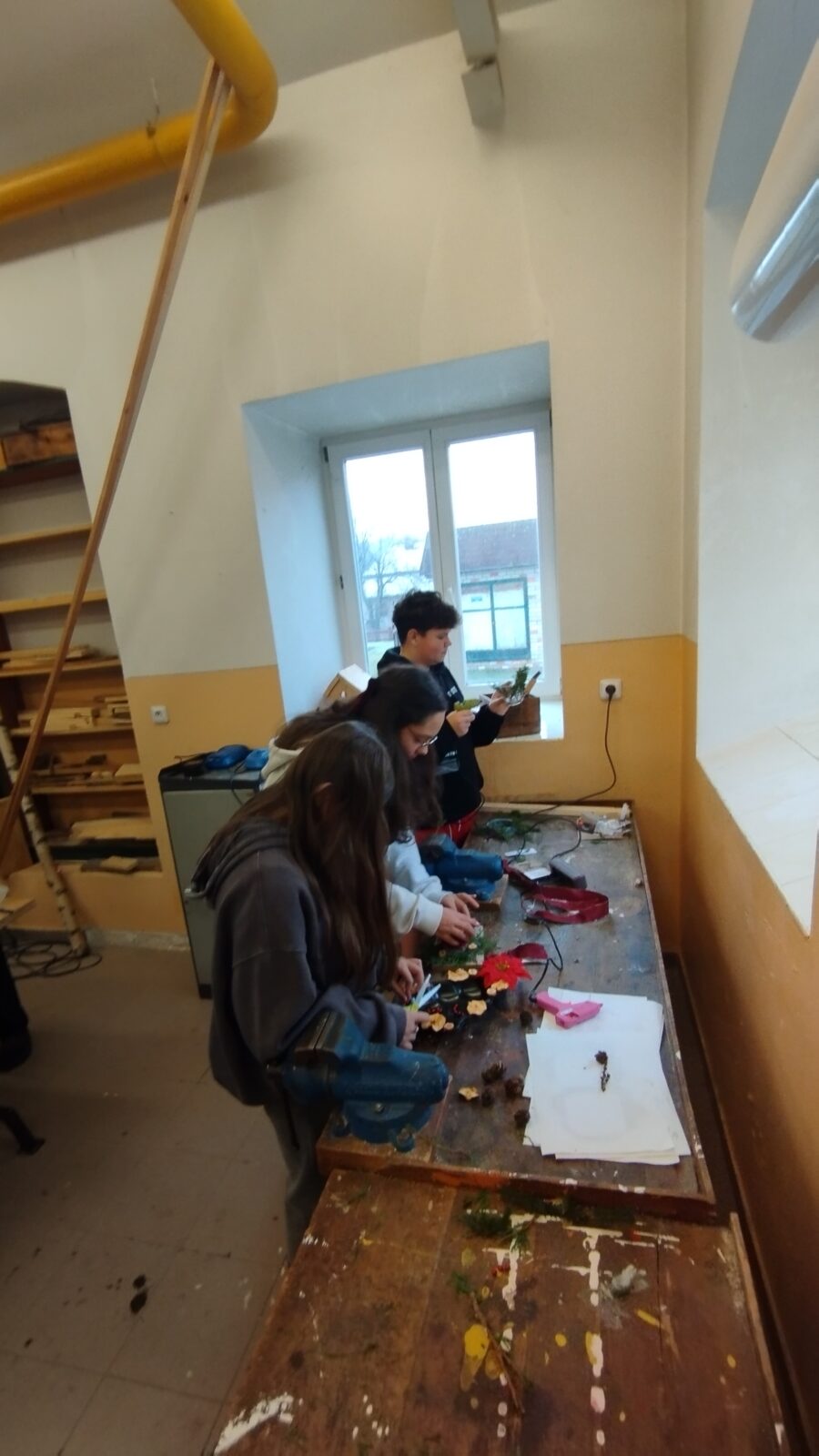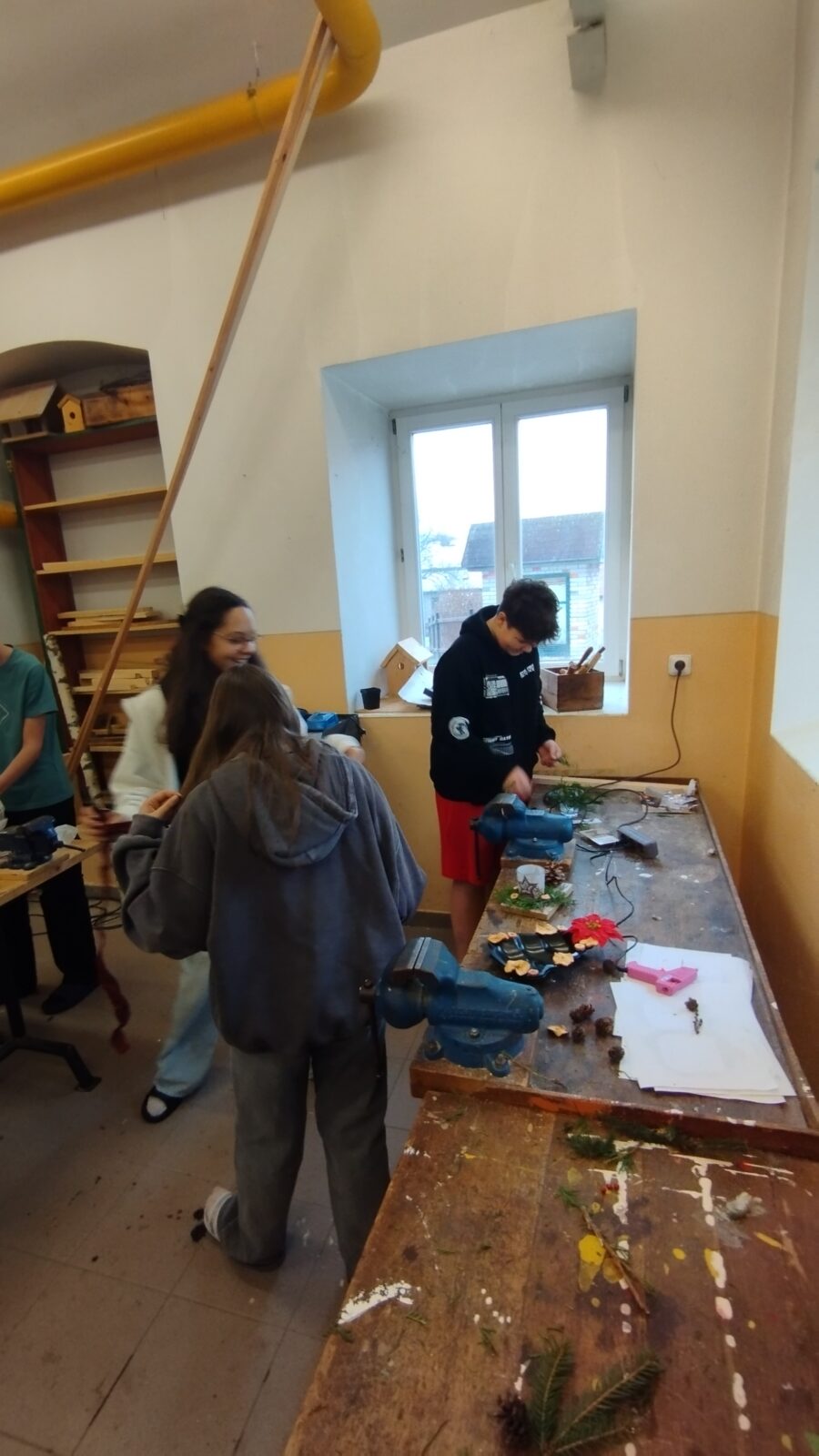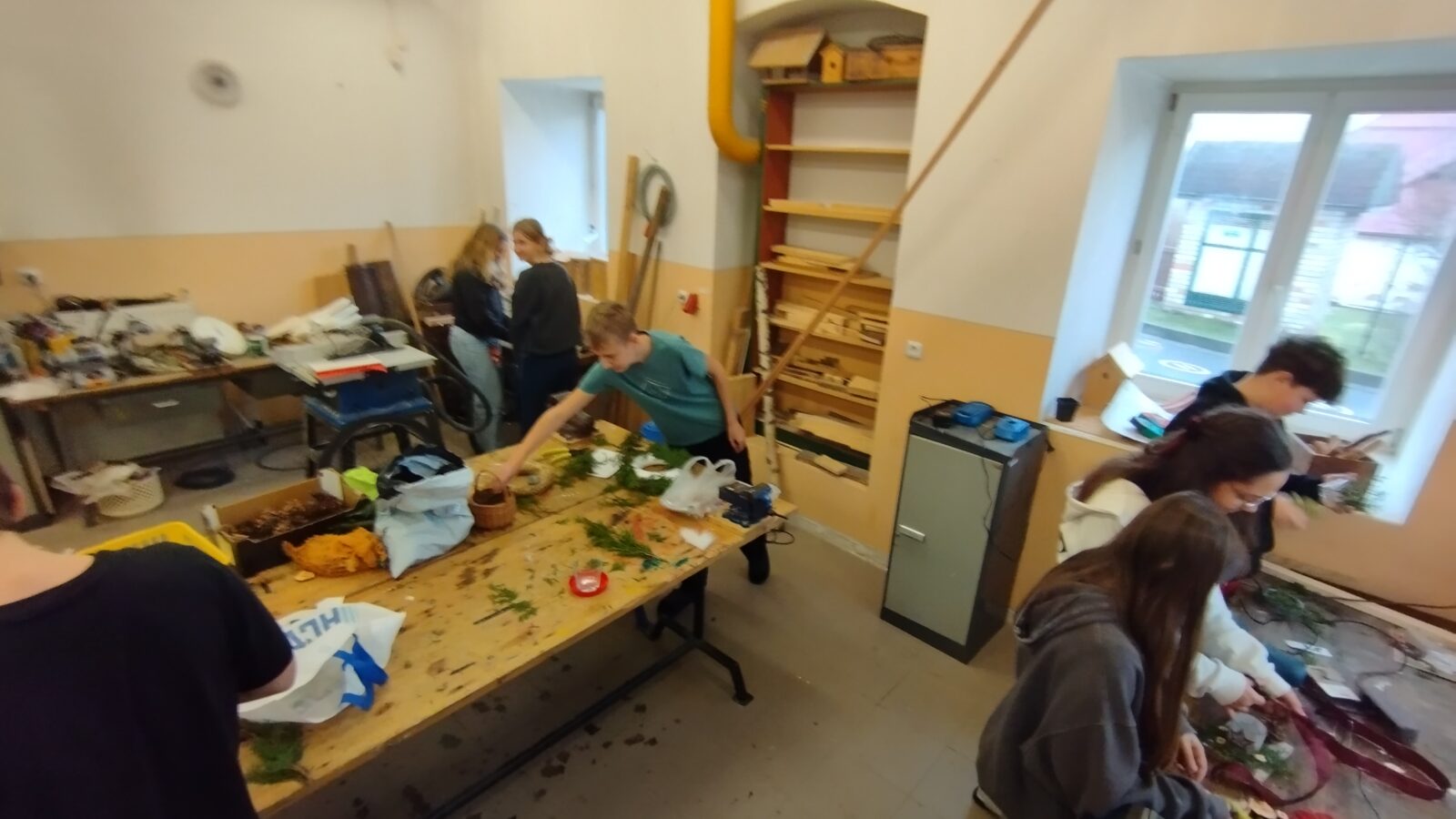 Také žáci 8.B se pustili do výroby vlastních vánočních dekorací. Pracovali s přírodními i recyklovanými materiály. Pod jejich rukama vznikaly originální věnce, svícny apod. Žáci si navzájem pomáhali, sdíleli nápady a užívali si příjemnou předvánoční atmosféru.