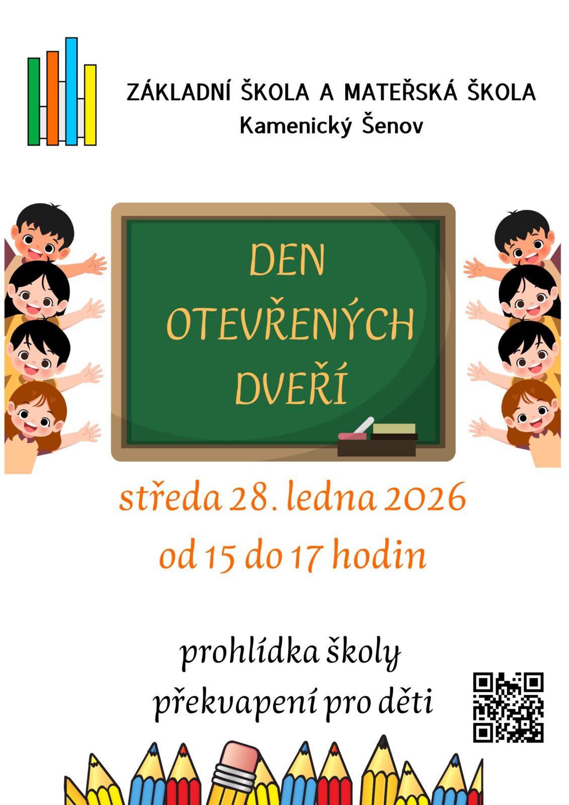 Srdečně zveme rodiče, děti i veřejnost na Den otevřených dveří naší školy. Přijďte se podívat, jak to u nás ve škole chodí. Společně si užijeme příjemné odpoledne plné objevování a malých překvapení pro děti.