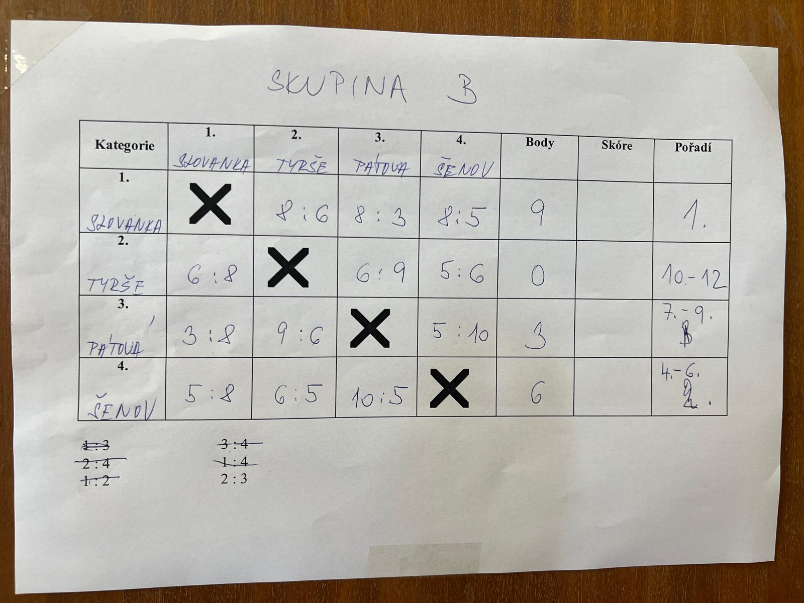 Ve skupině jsme obsadili 2. místo, celkově z turnaje tedy bereme moc pěkné dělené 4.- 6. místo!