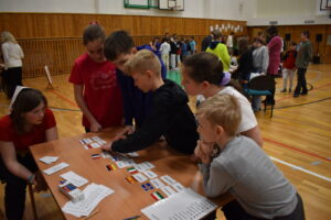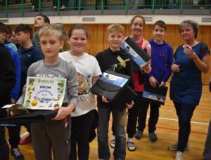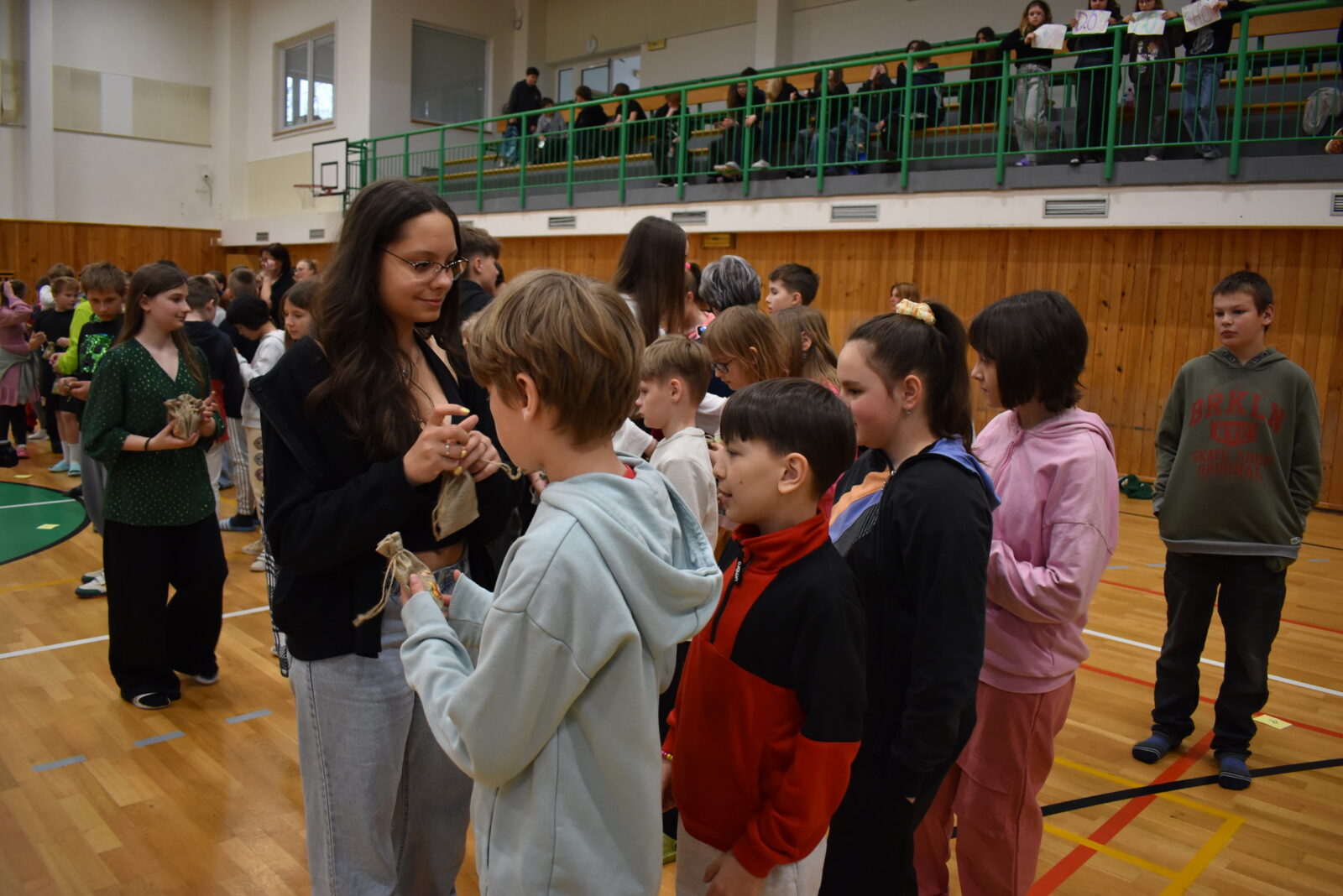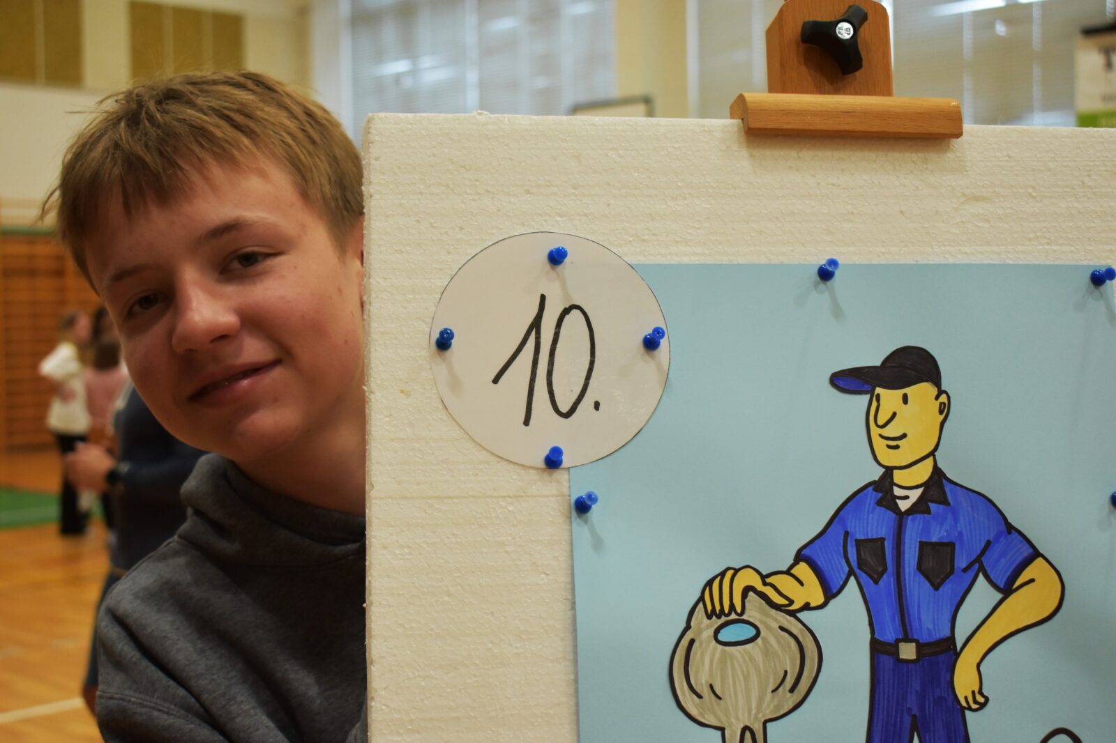 V pátek 10. dubna se v šenovské sportovní hale opět soutěžilo. Tentokrát se na start postavilo 11 smíšených pětičlenných týmů složených převážně z žáků 5.tříd. Čekalo na ně jedenáct profesních zastávek, na kterých si mohly vyzkoušet nejrůznější praktické dovednosti a prověřit své schopnosti. Krátce po půl deváté soutěž začala a páťáky čekal skoro tříhodinový maraton, během kterého někteří poprvé na vlastní oči spatřili, jak vypadá kopírák, pokusili se o masáž srdce, zapózovali co by jogíni, pokusili se proniknout do tajů ketlování nebo otestovali pravost bankovek. Na dalších stanovištích se mohli obeznámit s pracovními činnostmi typickými pro zámečníky, farmáře, hudebníky či malíře. Pokusili se vyluštit šifru v některém z cizích jazyků, taky pochopili, že i péče o náš chrup má svá úskalí a někdy se vyplatí využít služeb dentální hygienistky. Žáci 9.třídy připravili pro soutěžící chutné občerstvení, nechyběl ani kulturní program. Letošní ročník soutěže byl velmi vyrovnaný, bodové rozdíly mezi jednotlivými týmy byly skutečně minimální. Na 1. a 2.místě se umístila družstva z naší základní školy, tj. na 1.místě třída 5.B a 2.místo obsadil tým 5.A. Družstvo ze ZŠ a MŠ Holany po loňské bramborové medaili letos o stupínek poskočilo a dosáhlo na bronz. Poděkování patří nejen soutěžícím, ale i všem, kteří soutěž připravovali a přispěli k jejímu zdárnému průběhu. Vítězným týmům gratulujeme a budeme se s našimi dalšími osmáky těšit za rok opět na viděnou! I. Novotná