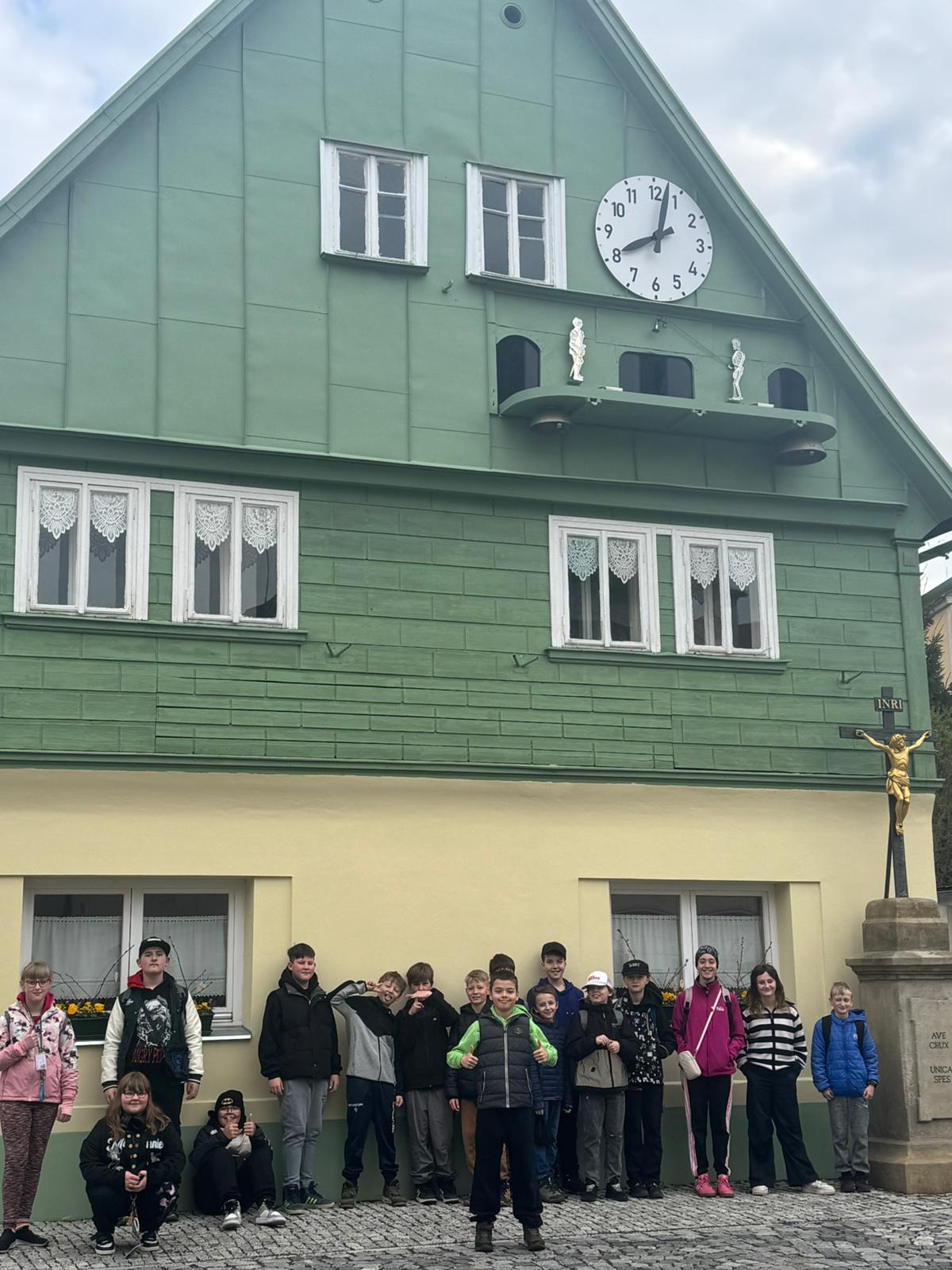 Ve dnech 16. 4. a 23. 4. 2026 odjížděli žáci 5.B a 4.B na exkurzi s výukou. V České Kamenici jsme si prohlédli skleněný orloj, kde kdysi bydlel hodinář a ve štítu domu orloj opravdu míval a park miniatur Mlýnky s interaktivními prvky. Cesta pokračovala vlakem do Krásné Lípy, Plšíkovy učebny. Tam nás přivítala paní ing. J. Judová, která nám byla průvodcem po celou dobu. Dozvěděli jsme se hodně zajímavých informací o vlku, největší šelmě Českého Švýcarska. Program, který pro nás připravila nám umožnil poznat život této psovité šelmy. Součástí byly interaktivní hry v učebně i na zahradě. Získali jsme spousty nových informací, které využijeme v hodinách přírodovědy a vlastivědy.