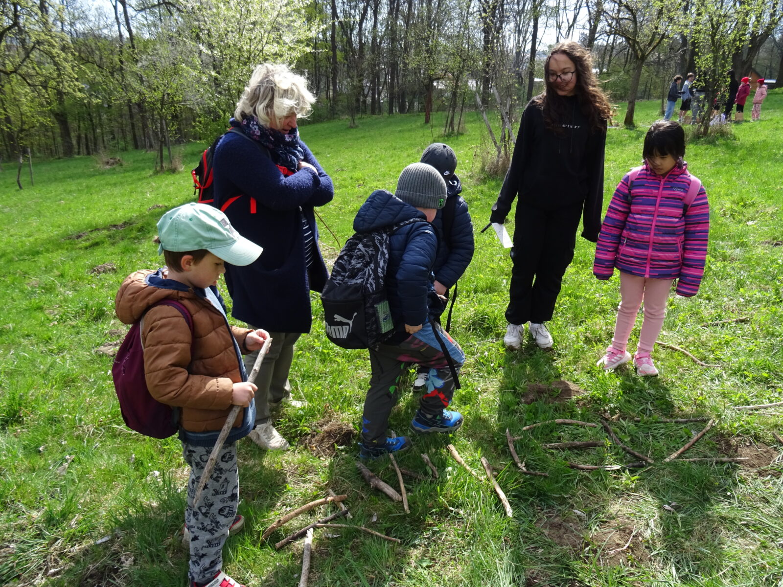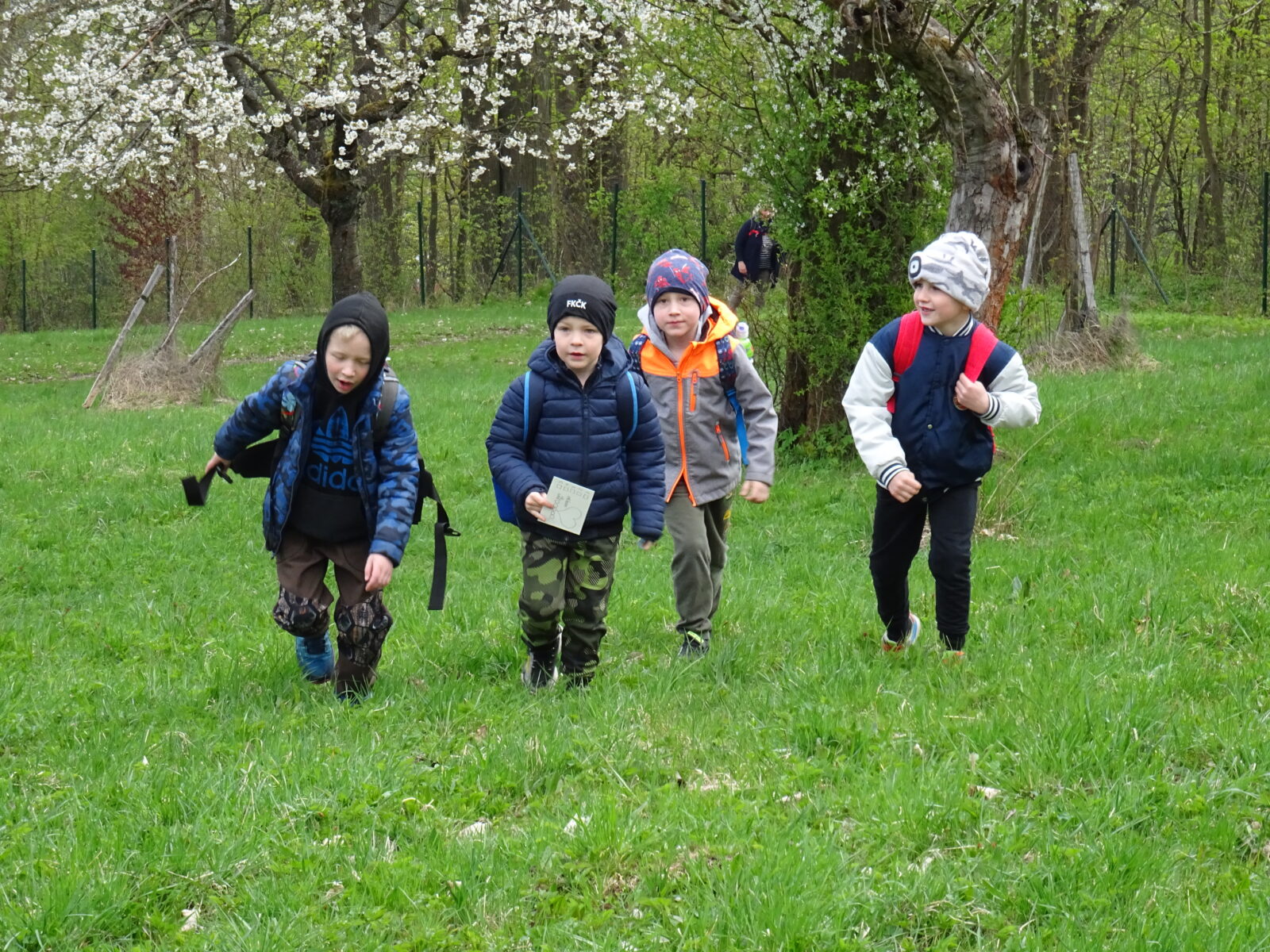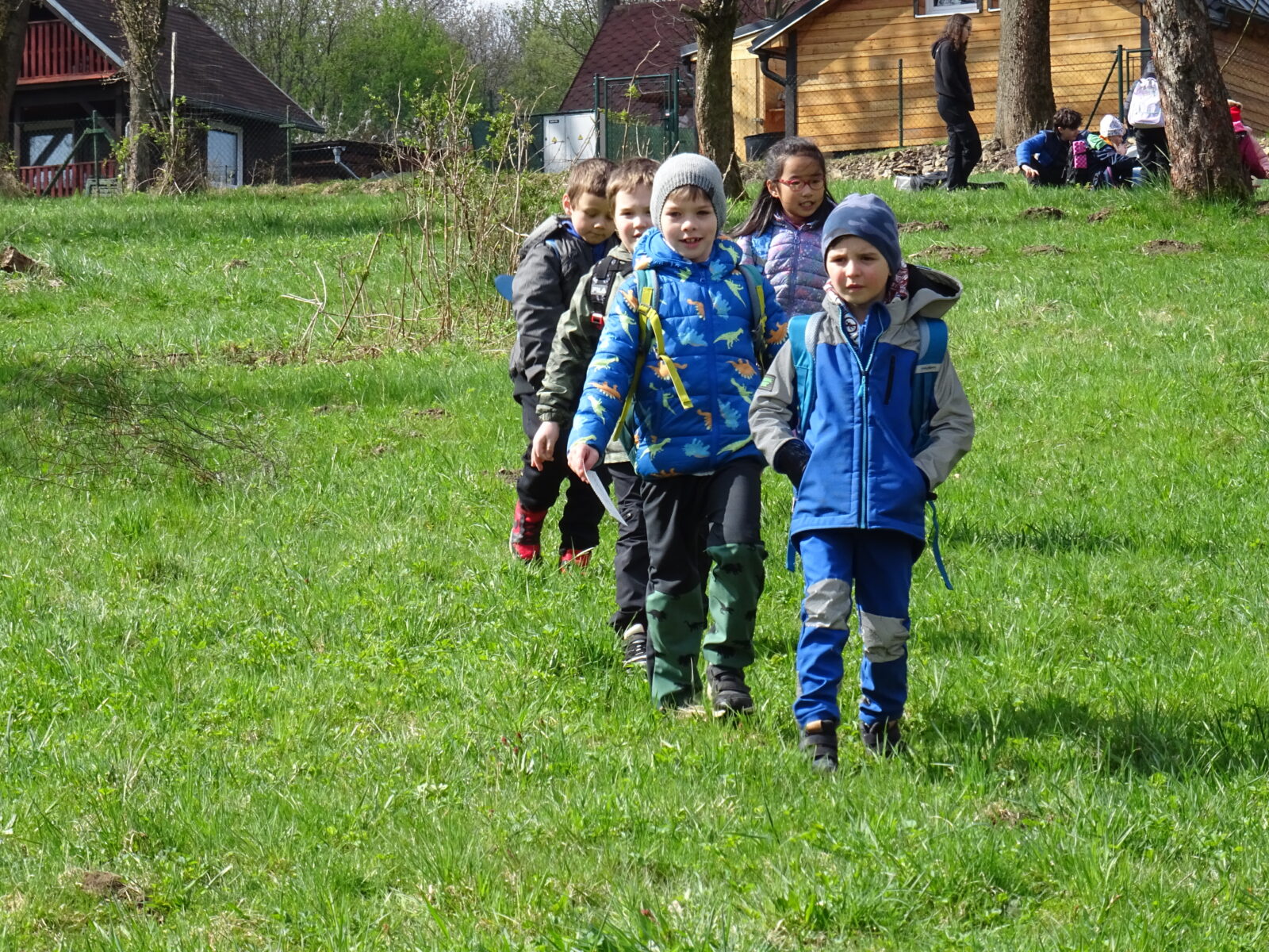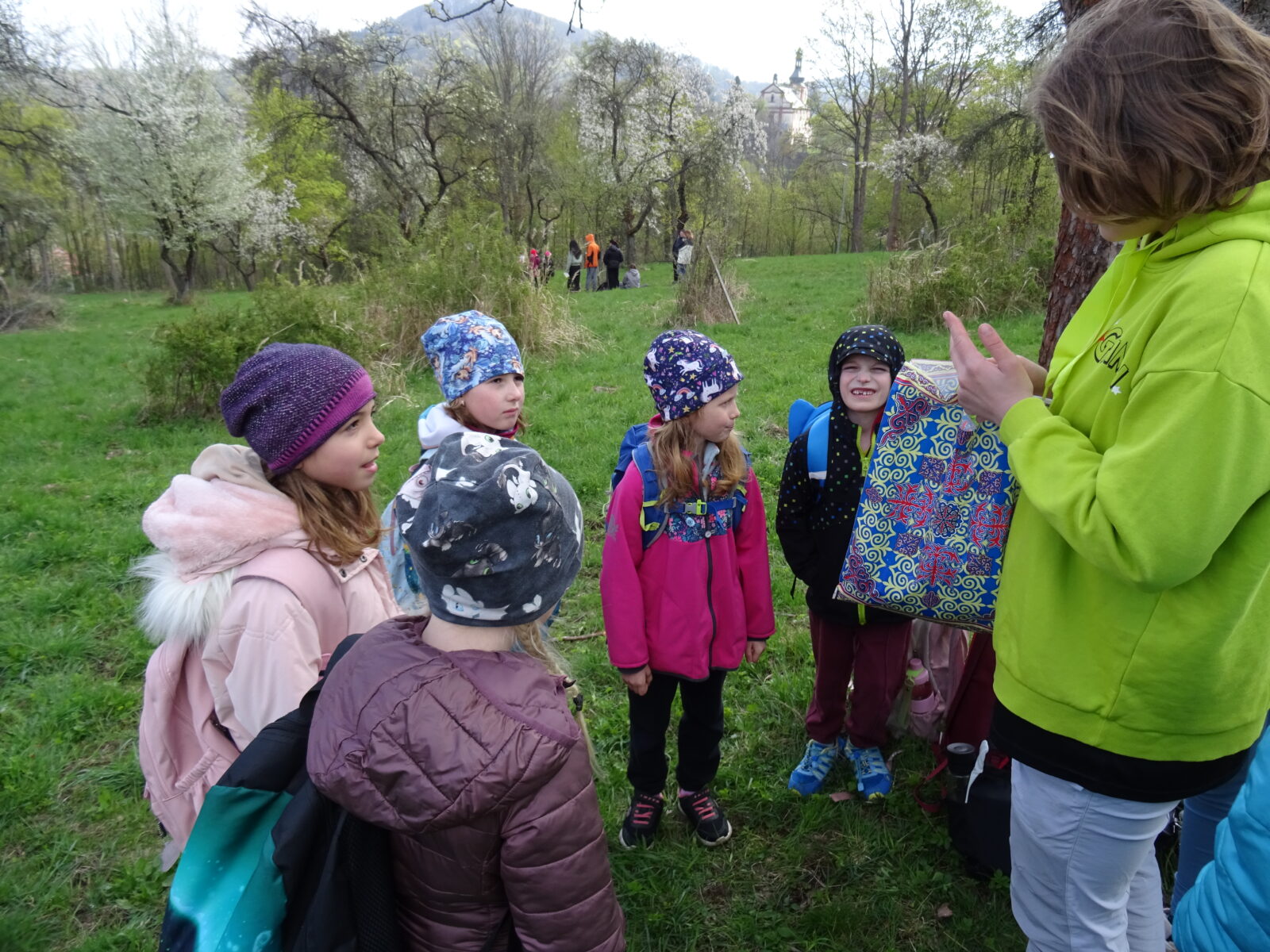V pátek nás tímto tématem provázeli starší kamarádi z 8.A – připravili pro nás dramatizaci příběhu O veselé a smutné planetě a aktivitu, kde jsme prokázali, kolik vět už dokážeme přečíst a přiřadit k obrázkům. Poslední dvě vyučovací hodiny jsme strávili v rozkvetlém a voňavém obecním sadu, kde nás čekaly praktické úkoly jako třídění odpadků, poznávání kvetoucích jarních rostlin a stromů nebo poznávání přírodnin (kamínek, ulita, peříčko) jen po hmatu. A za odměnu byla nakonec dokonce malá opékačka.