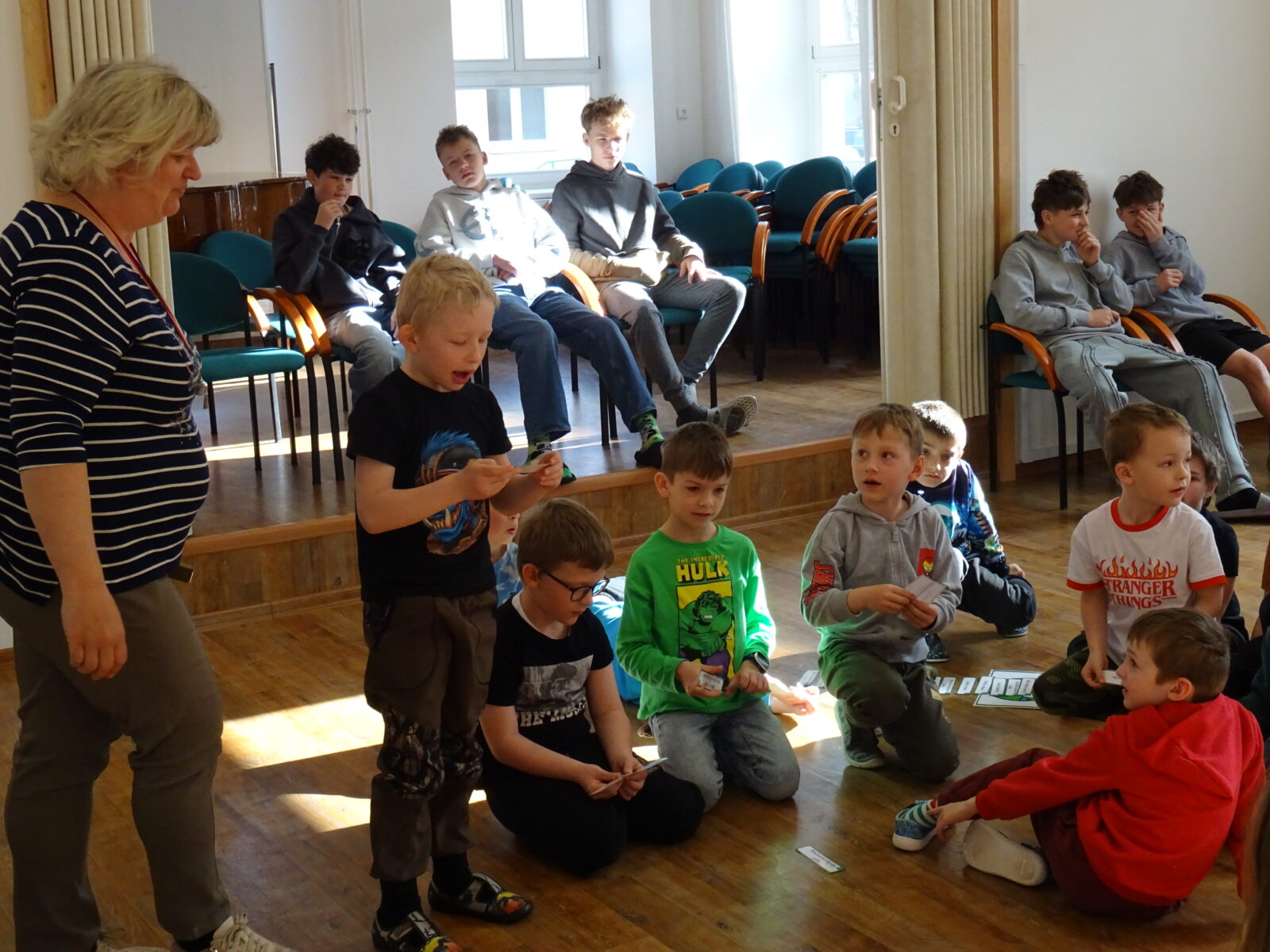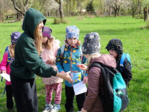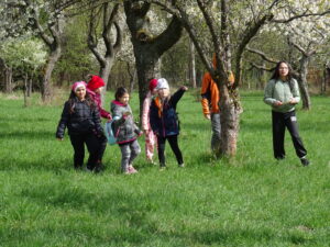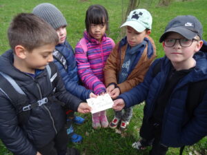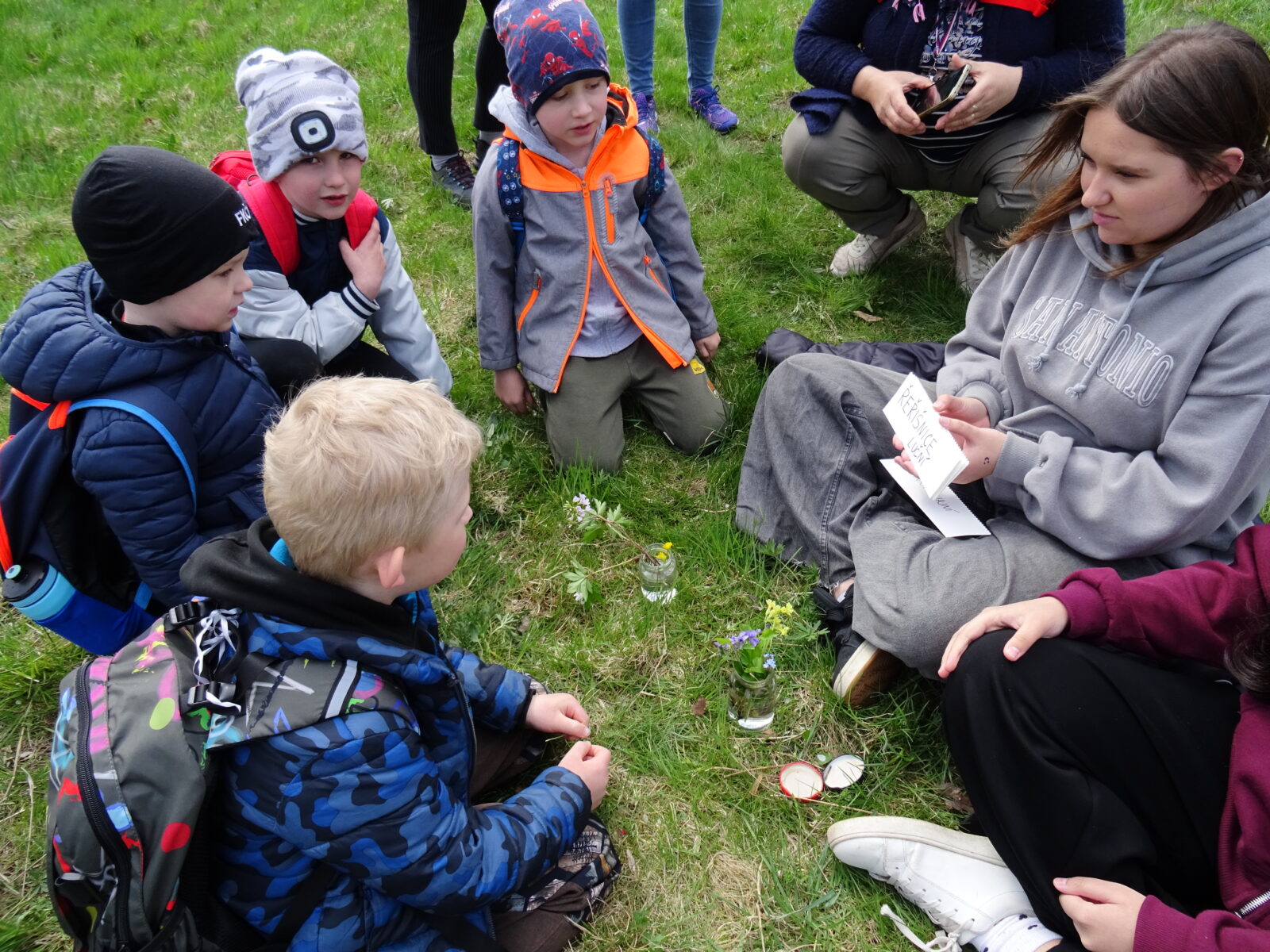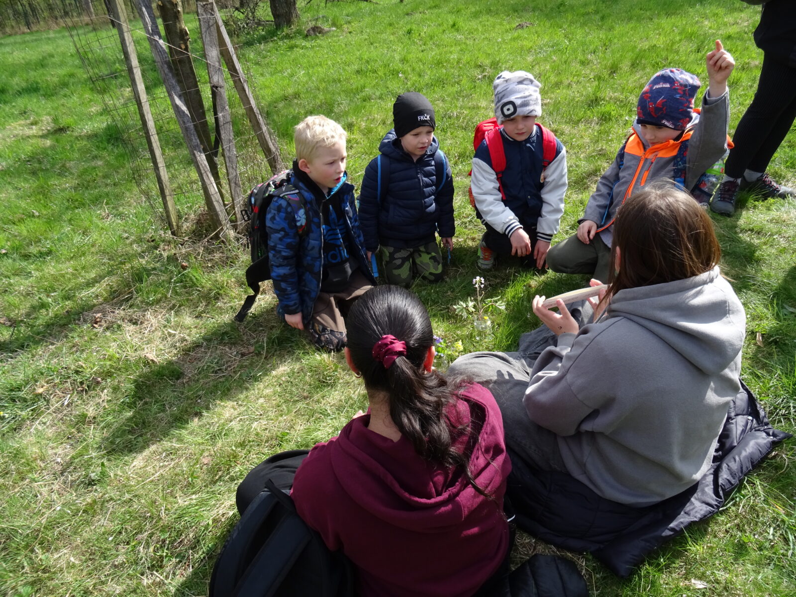 V pátek nás tímto tématem provázeli starší kamarádi z 8.A – připravili pro nás dramatizaci příběhu O veselé a smutné planetě a aktivitu, kde jsme prokázali, kolik vět už dokážeme přečíst a přiřadit k obrázkům. Poslední dvě vyučovací hodiny jsme strávili v rozkvetlém a voňavém obecním sadu, kde nás čekaly praktické úkoly jako třídění odpadků, poznávání kvetoucích jarních rostlin a stromů nebo poznávání přírodnin (kamínek, ulita, peříčko) jen po hmatu. A za odměnu byla nakonec dokonce malá opékačka.